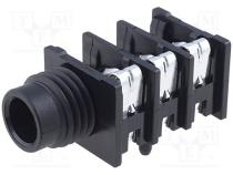 Výrobca AMPHENOL Konektor zásuvka Typ konektora Jack 6,35mm Druh konektoru zásuvka Verzia konektora stereo Prevedenie bez matice Priestorová orientácia uhlové, 90° Mechanická montáž na panel Elektrická montáž THT Povrch kontaktu pocínovaný