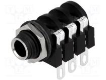 Výrobca AMPHENOL Konektor zásuvka Typ konektora Jack 6,35mm Druh konektoru zásuvka Verzia konektora stereo Prevedenie s dvojitým vypínačom Priestorová orientácia uhlové, 90° Mechanická montáž na panel Elektrická montáž spájkovanie Povrch kontaktu pocínovaný