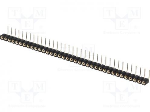 Výrobca CONNFLY Konektor zásuvka Typ konektora kolíkový Druh konektoru zásuvka Počet pinov 36 Verzia konektora točené kontakty Priestorová orientácia uhlové, 90° Rozstup kontaktov 2.54mm Elektrická montáž THT Usporiadanie kolíkov konektora 1x36