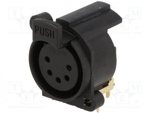 Zásuvka XLR zásuvka PIN 5 uhlové, 90° s tlačidlom THT čierna - Popis produktu