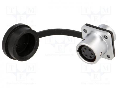 Výrobca WEIPU Typ konektora okrúhle Konektor zásuvka Druh konektoru zásuvka Séria konektoru SF12 Počet pinov 6 Trieda tesnosti IP67 Menovitý prúd 5A Elektrická montáž spájkovanie Mechanická montáž držiak (4 otvory) Mechanická montáž na panel Menovité napätie 125V Systém zabezpečenia push-pull Systém zabezpečenia vonkajší bajonet Pracovná teplota -40...100°C Prierez vodiča 0.75mm2