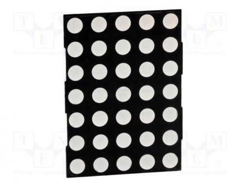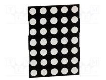 Typ displeja LED Montáž THT Druh displeja matice Rozlíšenie displeja 5x7 Farba žlto-zelená Jas 3-6mcd Spoločná elektróda anóda Pracovný prúd 20mA Vlnová dĺžka λd 572nm Rozmery 37.8 x 53.1mm Pracovné napätie 2.2...2.8V Výrobca Lucky Light