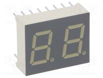 Typ displeja LED Montáž THT Druh displeja 7-segmentový Výška znaku 10mm Farba červený Jas 1.9-4.7mcd Spoločná elektróda katóda Raster vývodov 2.54mm Odstup medzi radami 12.7mm Pracovný prúd 10mA Vlnová dĺžka λd 625nm Rozmery 16 x 20.2mm Počet znakov 2 Výška znaku 0.4" Výrobca KINGBRIGHT ELECTRONIC