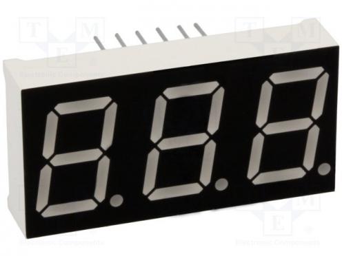 Typ displeja LED Montáž THT Druh displeja 7-segmentový Výška znaku 14.2mm Farba červený Jas 60mcd Spoločná elektróda katóda Vlnová dĺžka λd 625nm Rozmery 19 x 37.6 x 8mm Počet znakov 3 Výška znaku 0.56" Výrobca OPTO Plus LED Corp.