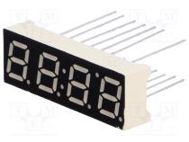 Typ displeja LED Montáž THT Druh displeja 7-segmentový Výška znaku 7.11mm Farba zelený Jas 3.5mcd Spoločná elektróda katóda Vlnová dĺžka λd 570nm Rozmery 10 x 30.26mm Počet znakov 4 Výška znaku 0.28" Výrobca WENRUN